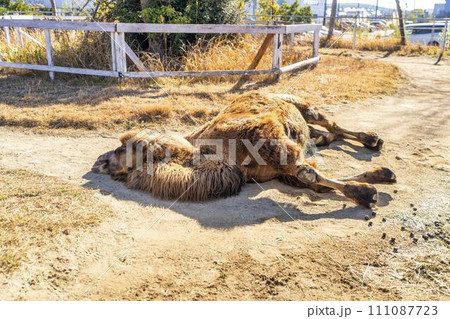 お休み中のフタコブラクダ 神戸どうぶつ王国 兵庫県神戸市