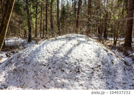 Ancient Baltic and Slavic mounds in the winter forest