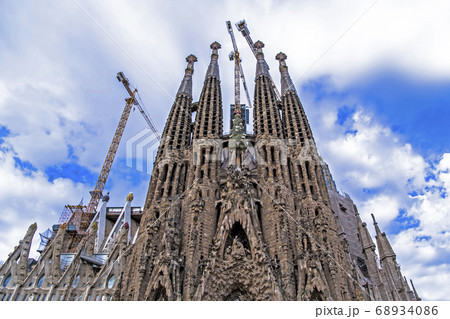 スペイン バルセロナ 青空に映えるサグラダ・ファミリア