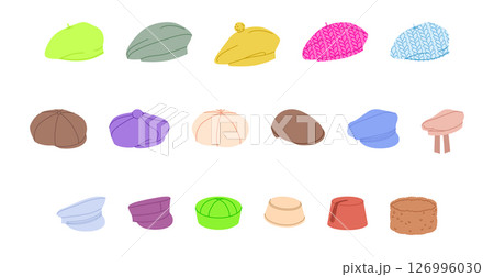 A red beret and a striped cap isolated on white background. Vector cartoon close-up illustration.
