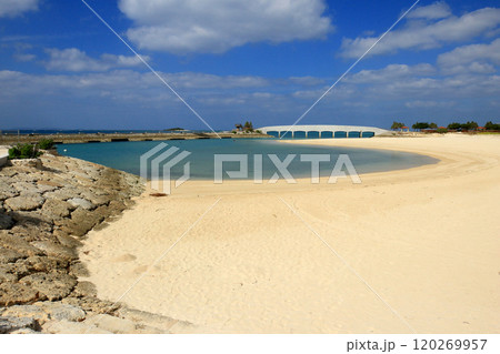 白い砂浜と青い海 白い橋