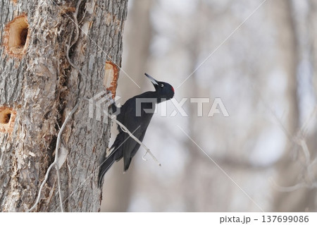 北海道、日本、クマゲラ、野鳥、キツツキ、野生、鳥、鳥類、自然、動物、小鳥、冬、野生動物、生物、屋外、