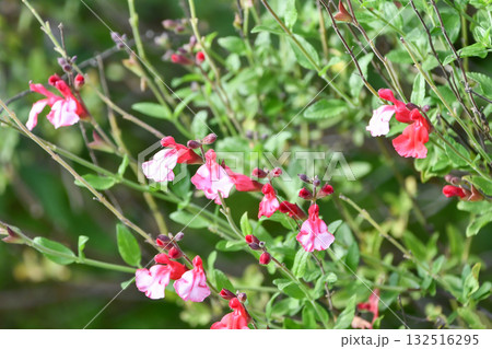 三鷹の花 植物 三鷹中原に咲く赤白複色のサルビアミクロフィラ