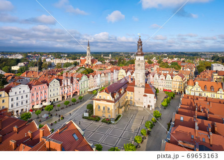 Boleslawiec, Poland. Aerial view of Rynek square