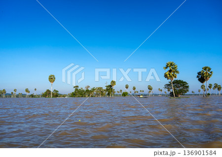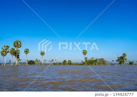 Borassus palm trees on Lake Tempe, South Sulawesi, Indonesia
