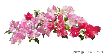 Beautiful red bougainvillea flower with leaves on white background. Summer background concept.