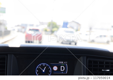 酷暑日イメージ 自動車のメーターパネル外気温41°