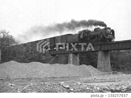 八高線高麗川橋梁を渡るC58型牽引の貨物列車