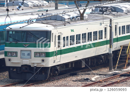 大宮総合車両センター東大宮センターにて留置中の185系電車(2025年4月)