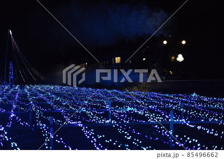 倉ヶ崎SL花畑のイルミネーションの中を走るSL大樹