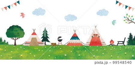 アウトドアキャンプ水彩風景