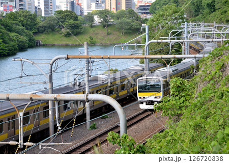 飯田橋駅付近ですれ違う総武線快速
