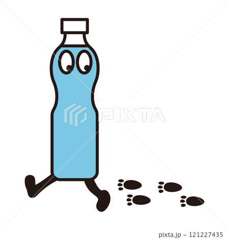 ペットボトルのキャラクターと足跡のカーボンフットプリントのイラスト素材