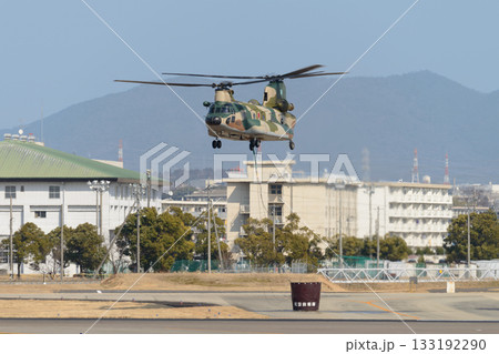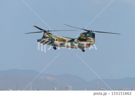 飛行するする陸上自衛隊のヘリコプターCH-47J