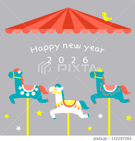 2026年 午年用メリーゴーランドの正方形バナーイラスト