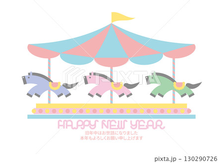 午年 馬年 年賀状テンプレート メリーゴーランド