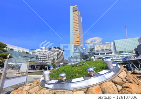 【香川県】 晴天のサンポート高松と高松駅前広場