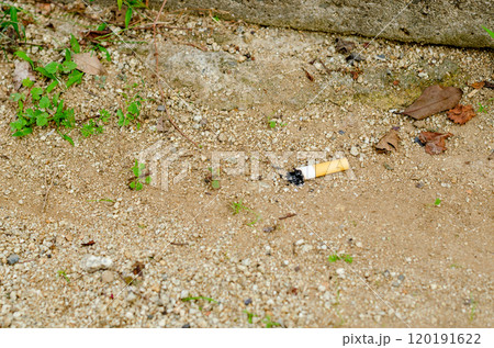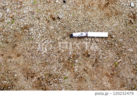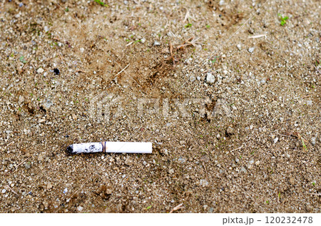 火がついたままポイ捨てされ自然消化したタバコが落ちている風景