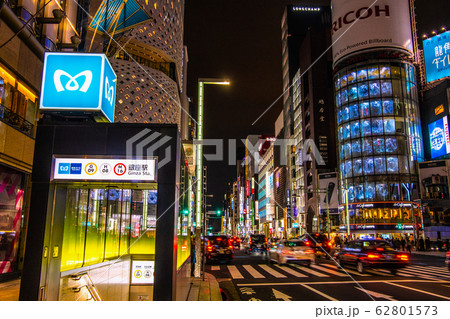 日本の東京都市景観 夜の銀座・新型肺炎・TOKYO2020=2020年3月20日(聖火が日本に到着)