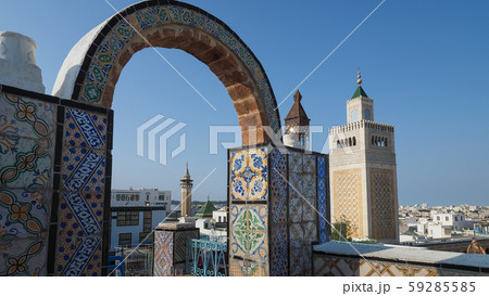 チュニジア・チュニスの旧市街の町並みとザイトゥーナモスク / Tunis, Tunisia