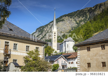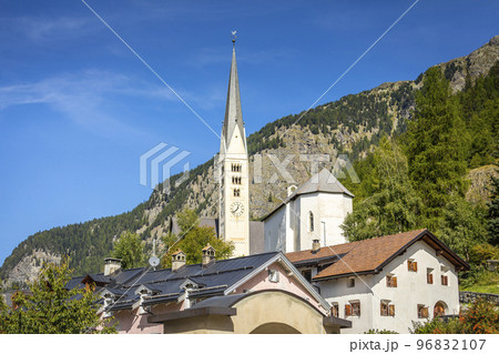 Idyllic landscape of Zernez village, Engadine, Swiss Alps, Switzerland