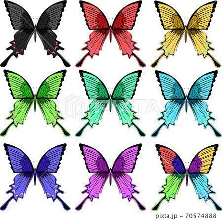 ジャコウアゲハ カラフル 9種類 イラスト