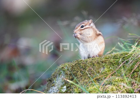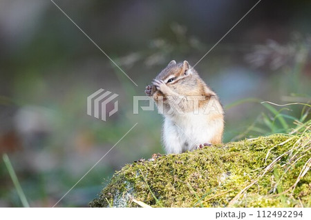苔を食べる可愛いシマリス