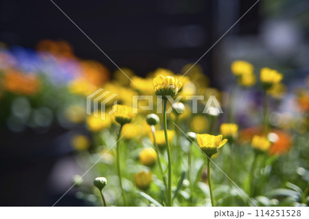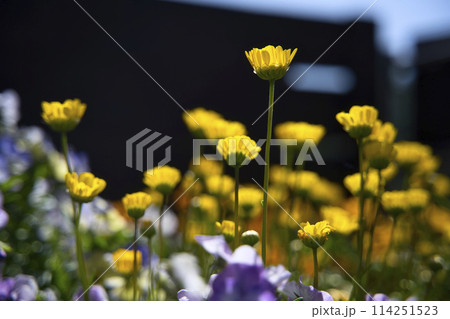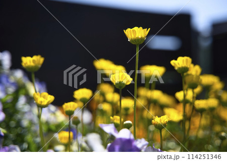 春のプランターに咲くクリサンセマム・ムルチコーレ