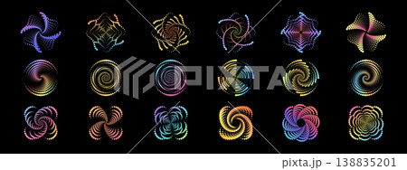 Abstract circular design featuring colorful dot patterns with halftone gradients, perfect for contemporary logos, icons, and geometric compositions