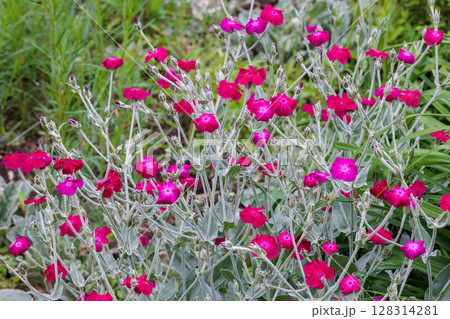 夏のガーデンで美しく咲くマツバハルシャギクの花