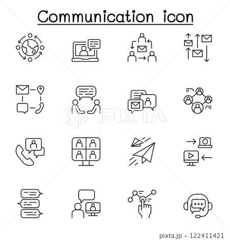 Communication icon set in thin line style
