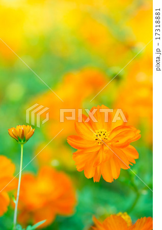 夏の野原に咲くオレンジ色のキバナコスモスの花