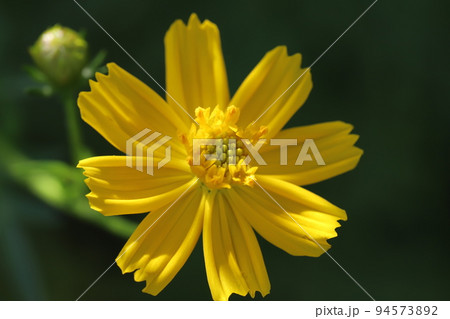 日本の秋の庭に咲く黄色いキバナコスモスの花