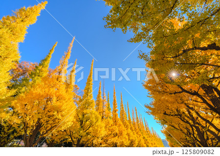明治神宮外苑のいちょう並木 青空に映える美しい黄葉