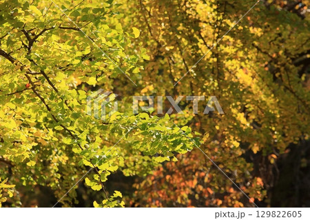 黄葉し始めたイチョウの葉 黄葉 街路樹