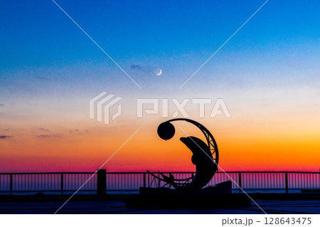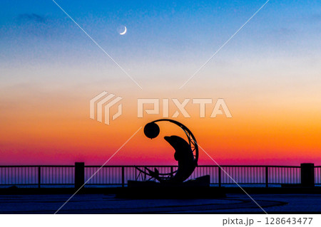 【北海道_稚内市_ノシャップ岬】サンセット ノシャップ 三日月とイルカ 7月