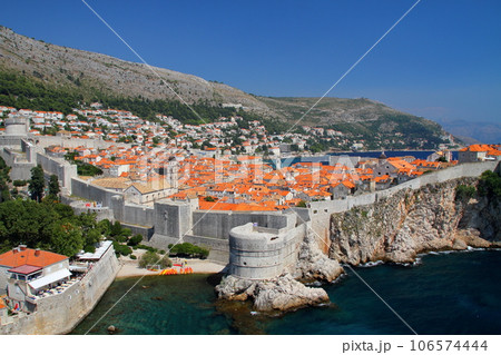 アドリア海の真珠、クロアチアの世界文化遺産ドブロブニク ロヴリイェナツ要塞から望む城壁と旧市街