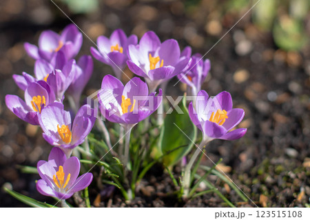 春の花壇に咲くクロッカス