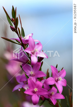 Vibrant pink star shaped flowers of the Australian native waxflower Crowea exalata, family Rutaceae. Evergreen shrub endemic to Victoria, flowers summer, autumn and winter