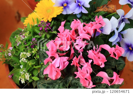 ピンク色ガーデンシクラメンの寄せ植え