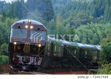 久大線の山中を行く、豪華寝台列車 ななつ星in九州