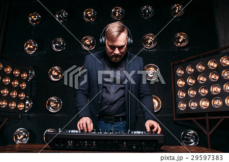 Young professional disk jockey holding DJ console