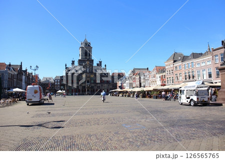 オランダ デルフト 旧市街の市庁舎とマルクト広場
