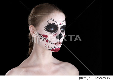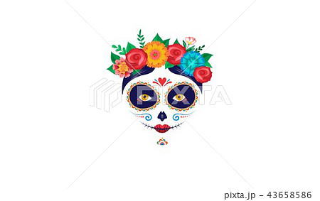day of dead traditional mexican halloween woman wearing traditional clothes skeleton mask dia de los