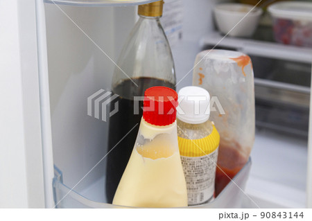 冷蔵庫のドアポケットに入った調味料
