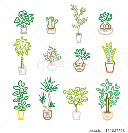 観葉植物12種類のセット1 水彩風手描きイラスト