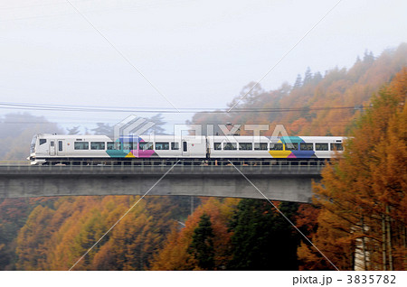 紅葉の中すれ違う特急E257系あずさと185系はまかいじ 中央線 富士見-信濃境