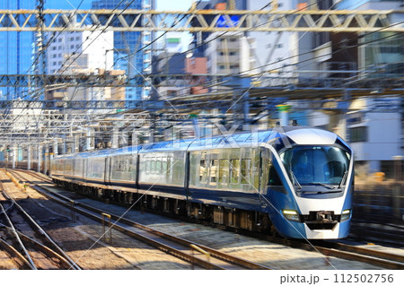 日本の東京都市景観 新景・恵比寿駅やJR東日本E261系電車サフィール踊り子、渋谷などを望む=21日