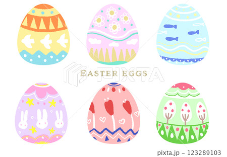 手書きのイースターエッグのイラスト6種