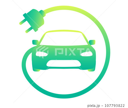 電気自動車・EVのイラスト グリーン